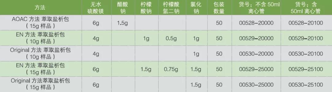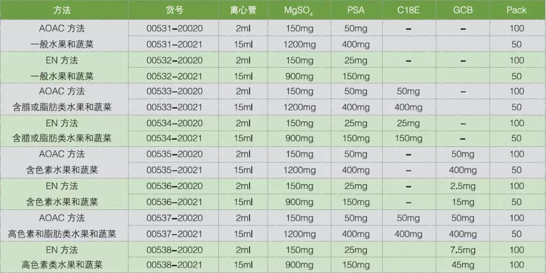 Welchrom® QuEChERS 部分产品订货信息如下: