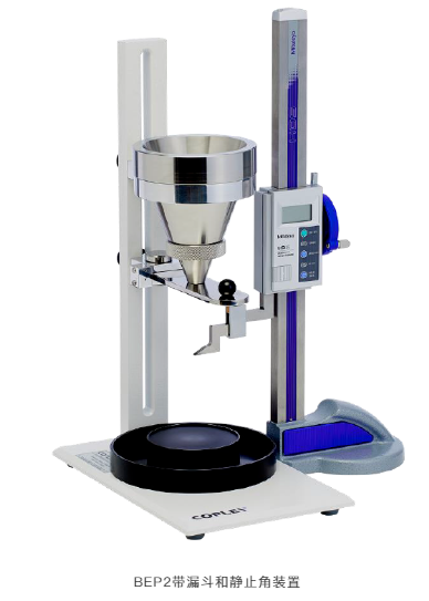 Copley的BEP2型流动性测试仪配上休止角装置,就可以完成休止角的测试。