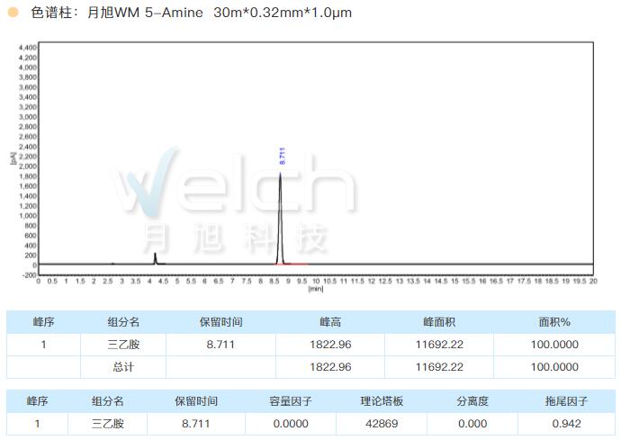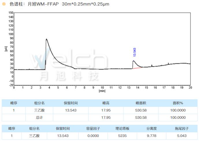 線上賭場胺改性柱WM 5-Amine 30m*0.32mm*1.0μm 检测三乙胺有很好的峰形和柱效。由于这一类物质在系统中也可能有残留,故仪器各部件也进行对应的清洗更换。