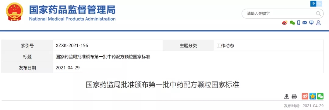2021年4月29日,国家药品监督管理局批准颁布了首批160个配方颗粒品种国家标准,涉及约1/3的常用中药材品种,设置6个月的过渡期,于2021年11月1日起正式实施。这标志着中药配方颗粒试点工作的结束,备案管理实施在即。