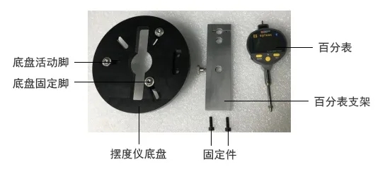 摆度仪由三部分组成,固定脚、支架和百分表。