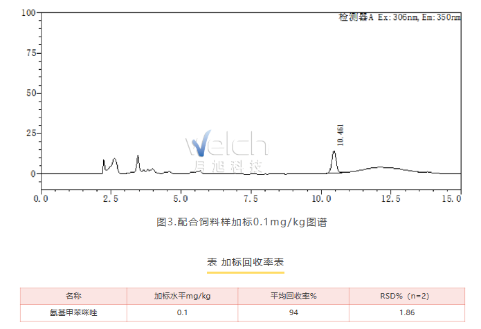 04、色谱条件● 色谱柱:線上賭場UItimate® XB-C18,4.6×250mm,5μm。 流动相:乙腈水溶液; 流速:1.0mL/min; 柱温:30℃; 进样量:10μL; 波长:激发波长306nm,发射波长350nm。
