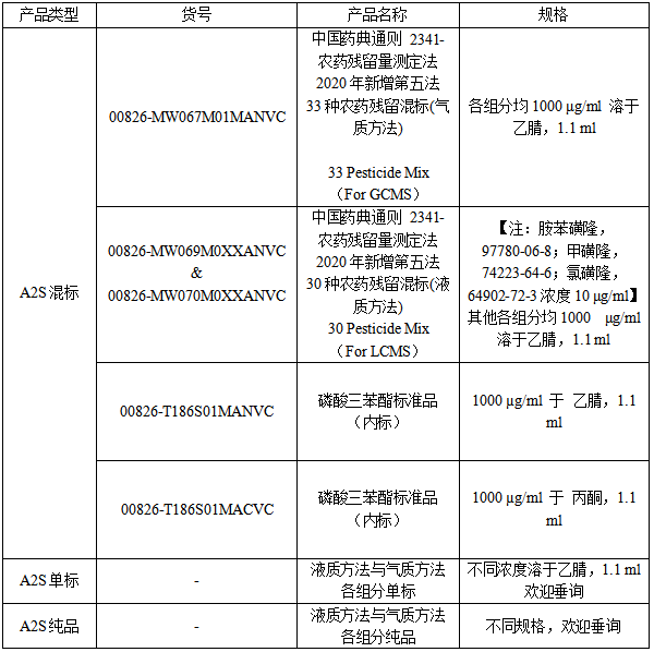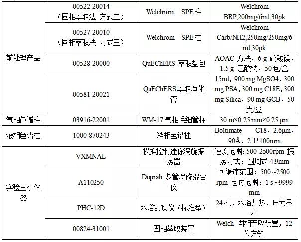 针对近日公示的2341 农药残留量测定第五法 药材及饮片(植物类)中禁用农药多残留的检测方法,線上賭場提供成套的检测耗材包,并特别推出气质质和液质质方法测定中的混标产品以及适用的前处理小柱。